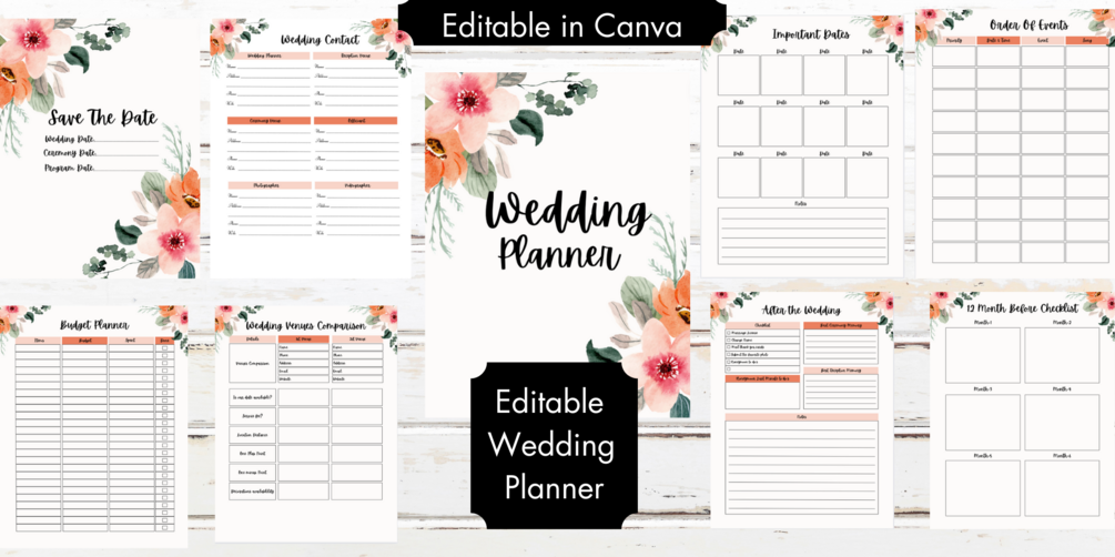 Instant download wedding planner. Includes customizable guest lists, organization, thank you notes, budget organizers, venue comparisons and more.